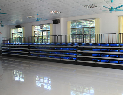 该看台为手动可移动式伸缩看台,看台总共4层,座椅采用高靠背翻版折叠椅。看台不使用时可以折叠靠墙,也可以推走。