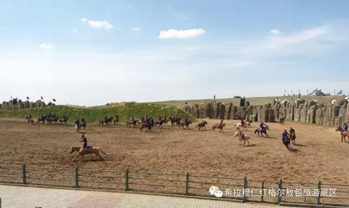 红格尔敖包是希拉穆仁草原最著名的敖包。绿蛙看台于2017年5月份进驻该景区,拥有可容纳近5000人可拆卸拼装看台、膜结构遮阳顶棚,310m假山围合造景和10米高的瀑布景观。《漠南传奇》大型实景演出剧展示了蒙古族那达慕大会的各种活动场景和部落之间征战的场面,强大的演员阵容和近百匹马、骆驼、牦牛的演出给游客呈上视觉盛筵。