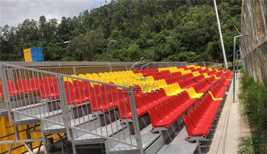 活动看台座椅采用低靠背中空吹塑座椅,前置式安装。座椅座深432mm,座宽450mm,背高409mm。