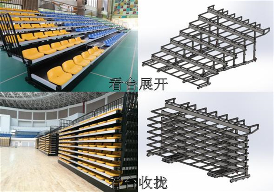 伸缩看台也称为活动看台,活动看台的称呼是相对于固定看台而来,伸缩看台拉伸成台阶形时,看台上的座椅供观众舒适地欣赏节目,收缩成匣子状(似抽屉)时则占用很少的空间,让出场地以安排他用。伸缩看台可充分利用室内的有限面积,满足不同功能情况下的多座位要求。伸缩看台广泛应用于体育馆、会议室、示教室、演播厅、多功能厅等。